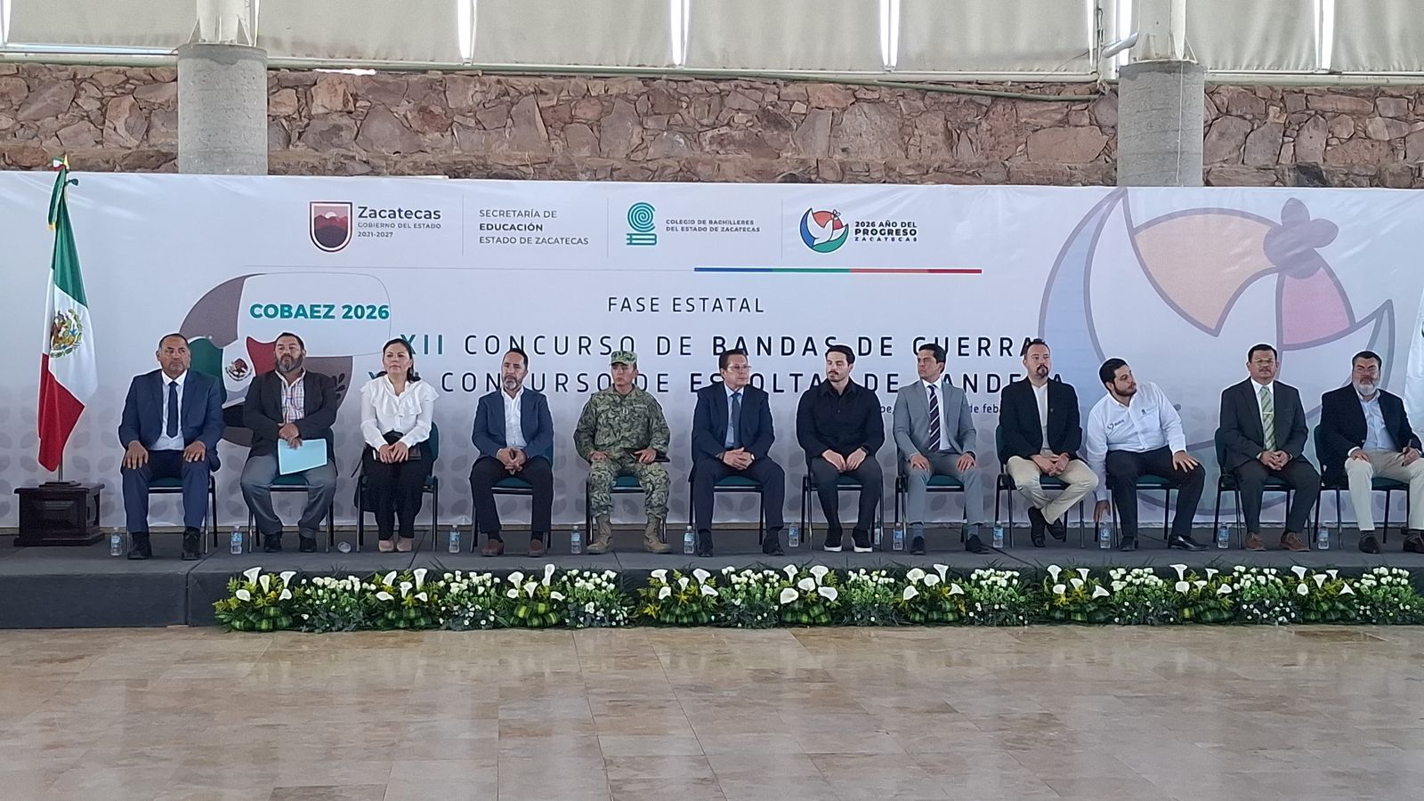 Guadalupe, Zac., 27 de febrero de 2026.- Con el objetivo de fortalecer la formación cívica, los valores patrios y el trabajo en equipo entre las y los estudiantes del Colegio de Bachilleres del Estado de Zacatecas, este viernes se llevó a cabo el XII Concurso de Bandas de Guerra y XXI Concurso de Escoltas de Bandera Cobaez 2026, evento que reunió a más de 100 estudiantes, provenientes de distintos planteles del subsistema.