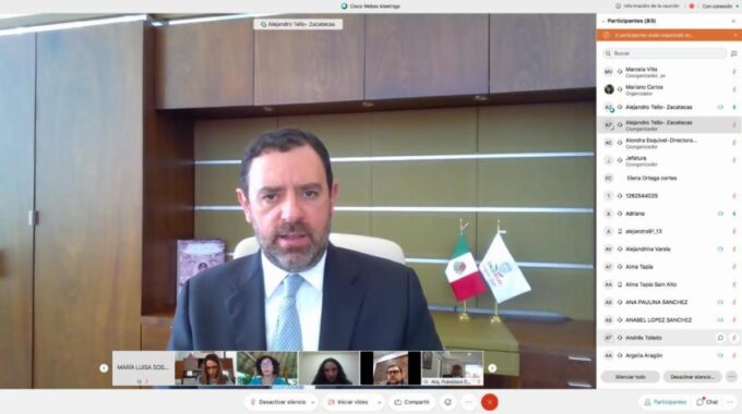 La sesión virtual estuvo conducida por la Secretaria Técnica del Sepasev, Adriana Rivero Garza, y participaron el Secretario General de Gobierno, Jehú Salas, integrantes del Gabinete estatal; el Magistrado Presidente del Tribunal Superior de Justicia, Arturo Nahle; el Fiscal General de Justicia, Francisco Murillo Ruiseco; la Presidenta de la Comisión de Derechos Humanos del Estado de Zacatecas, María de la Luz Domínguez Campos, representantes de colectivos feministas y otras autoridades.