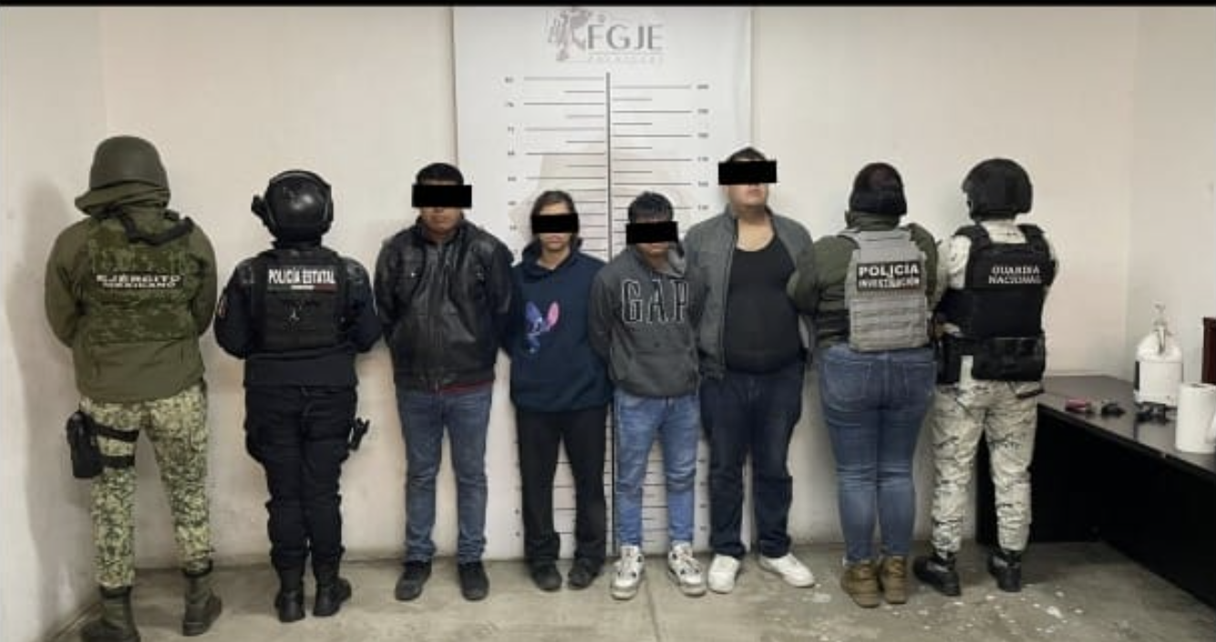 Durante el operativo se logró la detención de cuatro personas identificadas como Rafael N., de 24 años de edad, originario de Oaxaca; Jorge Alberto N., de 22 años, de Guanajuato; Pedro N., de 19 años, de Guerrero y Michelle N., de 31 años, oriunda de Zacatecas