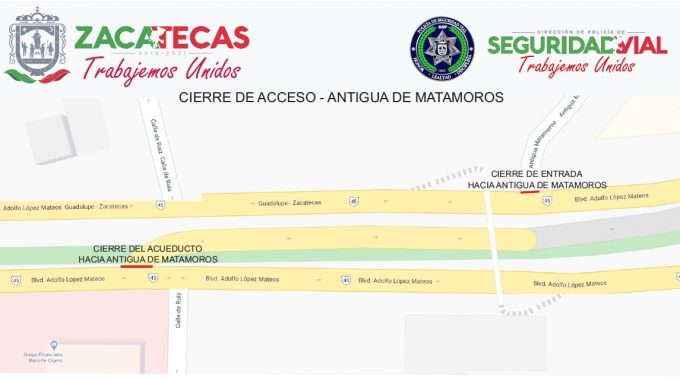Zacatecas, Zac.- A partir de este viernes 24 de abril, autoridades de la Dirección de Policía de Seguridad Vial (DPSV) cerrarán los accesos a la avenida Ramón López Velarde y a la antigua Matamoros, en reforzamiento a los cierres ya existentes en vialidades del estado, informó Francisco Oswaldo Caldera Murillo, titular de la dependencia.
