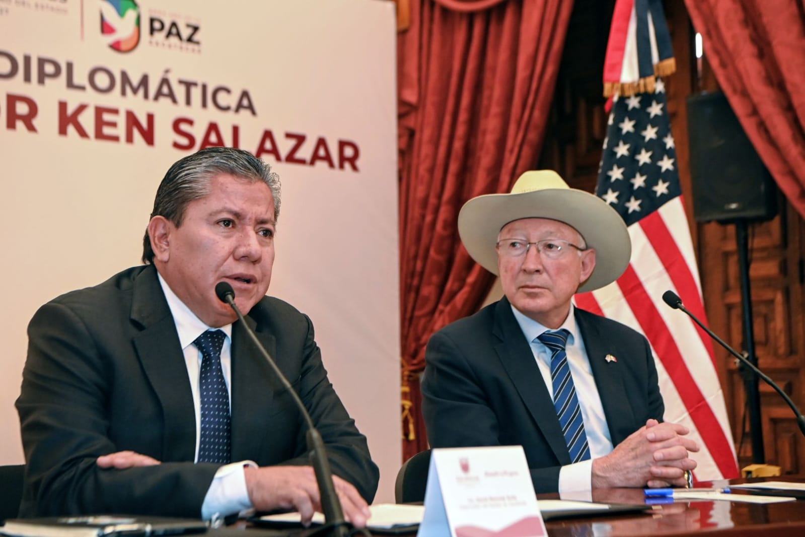 En un encuentro con medios de comunicación que sostuvieron el mandatario estatal y el diplomático estadounidense, Salazar consideró que haber declarado el Año de la Paz en Zacatecas “es una visión que tiene unos resultados muy grandes”.