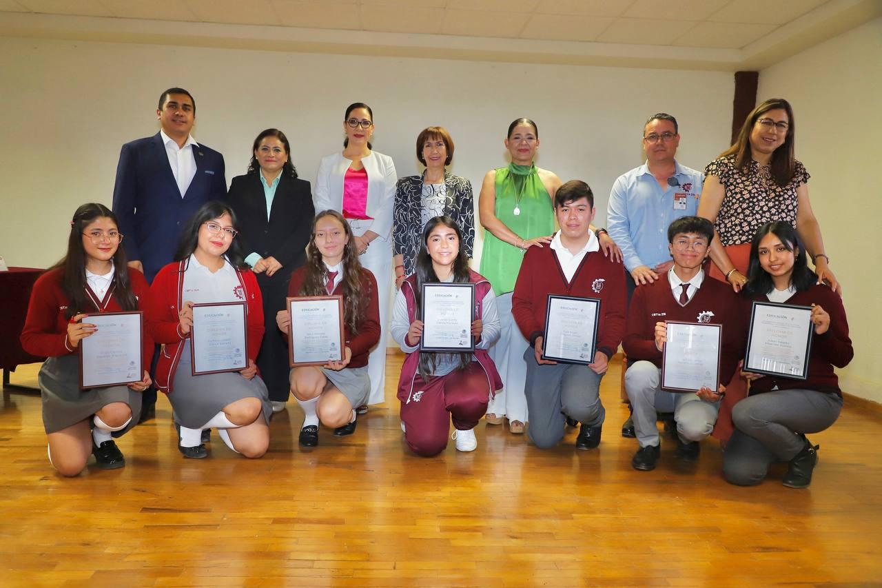 Zacatecas, Zac., 28 de mayo de 2024.- En representación del Gobierno de Zacatecas, la Secretaria de Educación entregó reconocimientos a siete estudiantes que resultaron ganadores del 23 Festival Nacional Académico de la Dirección General de Educación Tecnológica Industrial (DGETI).