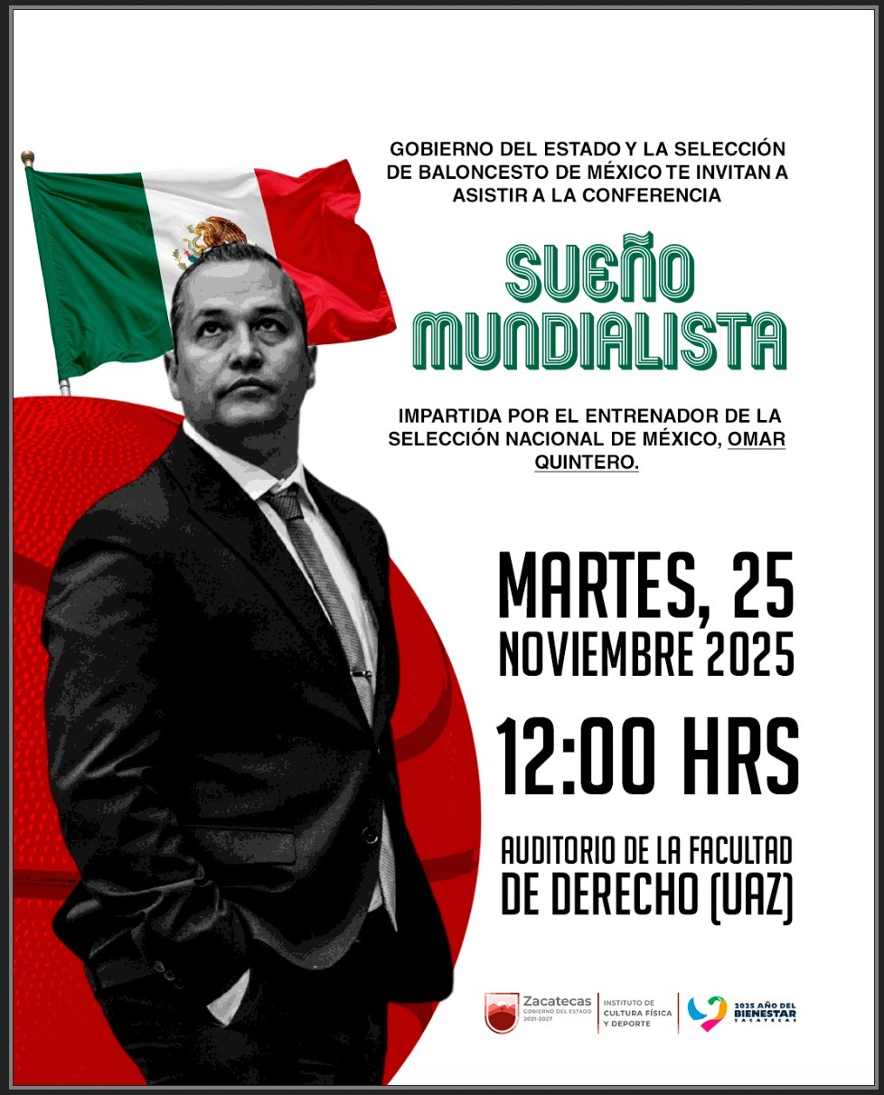 ▪️ El Gobierno de Zacatecas y la Selección Nacional de Baloncesto invitan a estudiantes, clubes deportivos y público en general a la conferencia que se llevará a cabo este martes 25 de noviembre, en el auditorio de la Unidad Académica de Derecho de la UAZ, a las 12:00 hrs