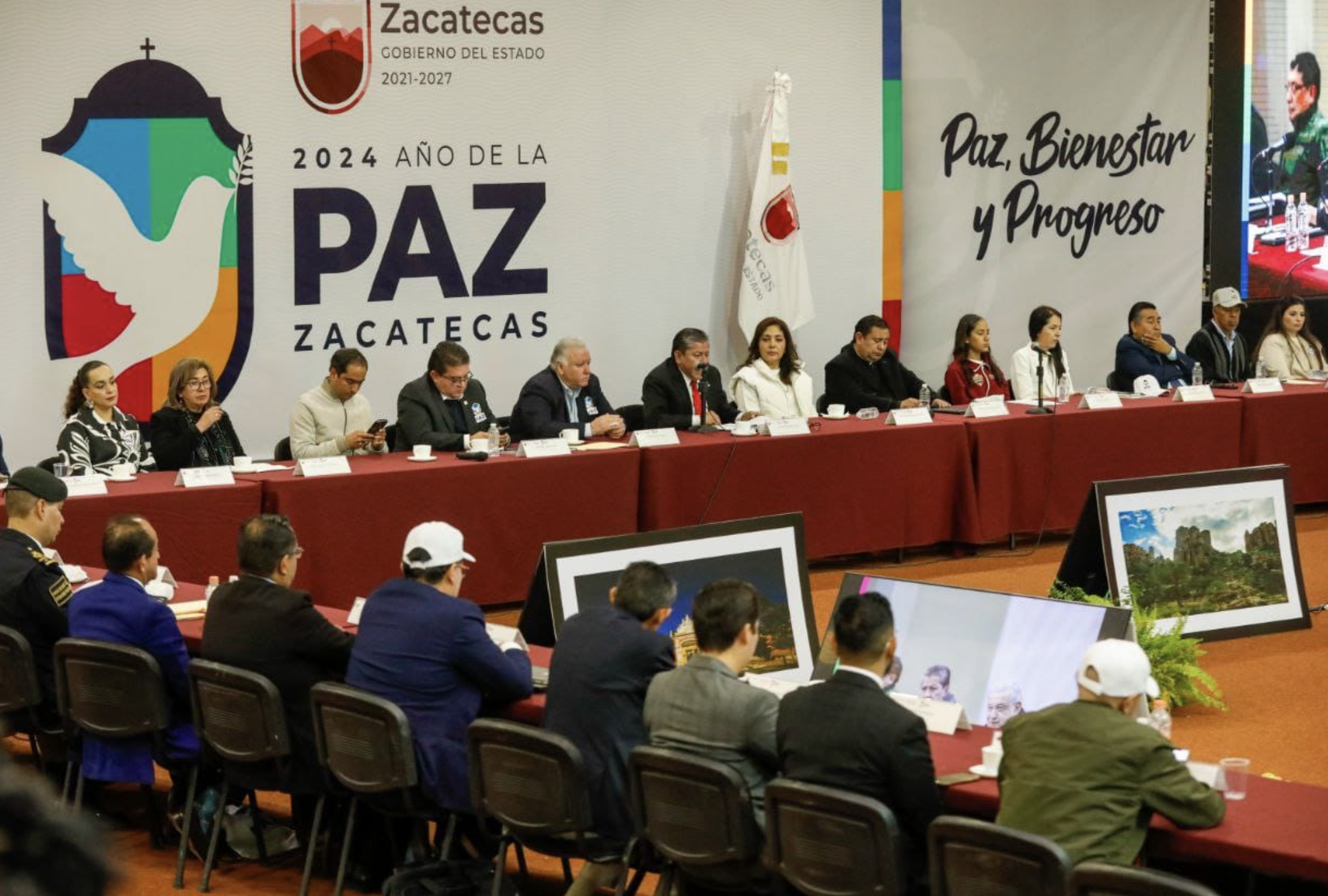 Zacatecas, Zac., 24 de enero de 2024.- Representantes del sector empresarial y de servicios en la entidad, así como de la Iglesia Católica, coincidieron en que la construcción de la tranquilidad y la seguridad en Zacatecas es tarea de todos y, en este sentido, se sumaron a la estrategia 2024 Año de la Paz, bajo el liderazgo del Gobernador David Monreal Ávila.