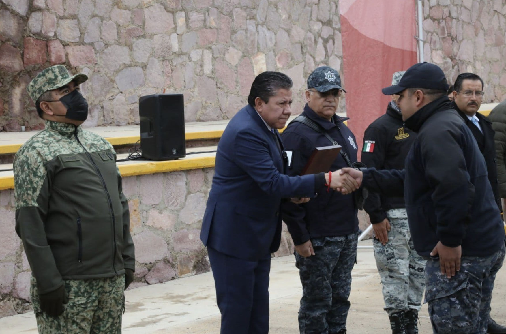 Acompañado por Rodrigo Reyes Mugüerza, secretario general de Gobierno, por Elías Ruiz Aldaco, jefe de Estado Mayor de la Decimoprimera Zona Militar; y por Juan Manríquez Moreno, coordinador estatal de la Guardia Nacional, a nombre del pueblo de Zacatecas, el Gobernador David Monreal agradeció el esfuerzo de las distintas corporaciones, como son también las Fuerzas de Reacción Inmediata (FRIZ), Ejército Mexicano y Guardia Nacional.
