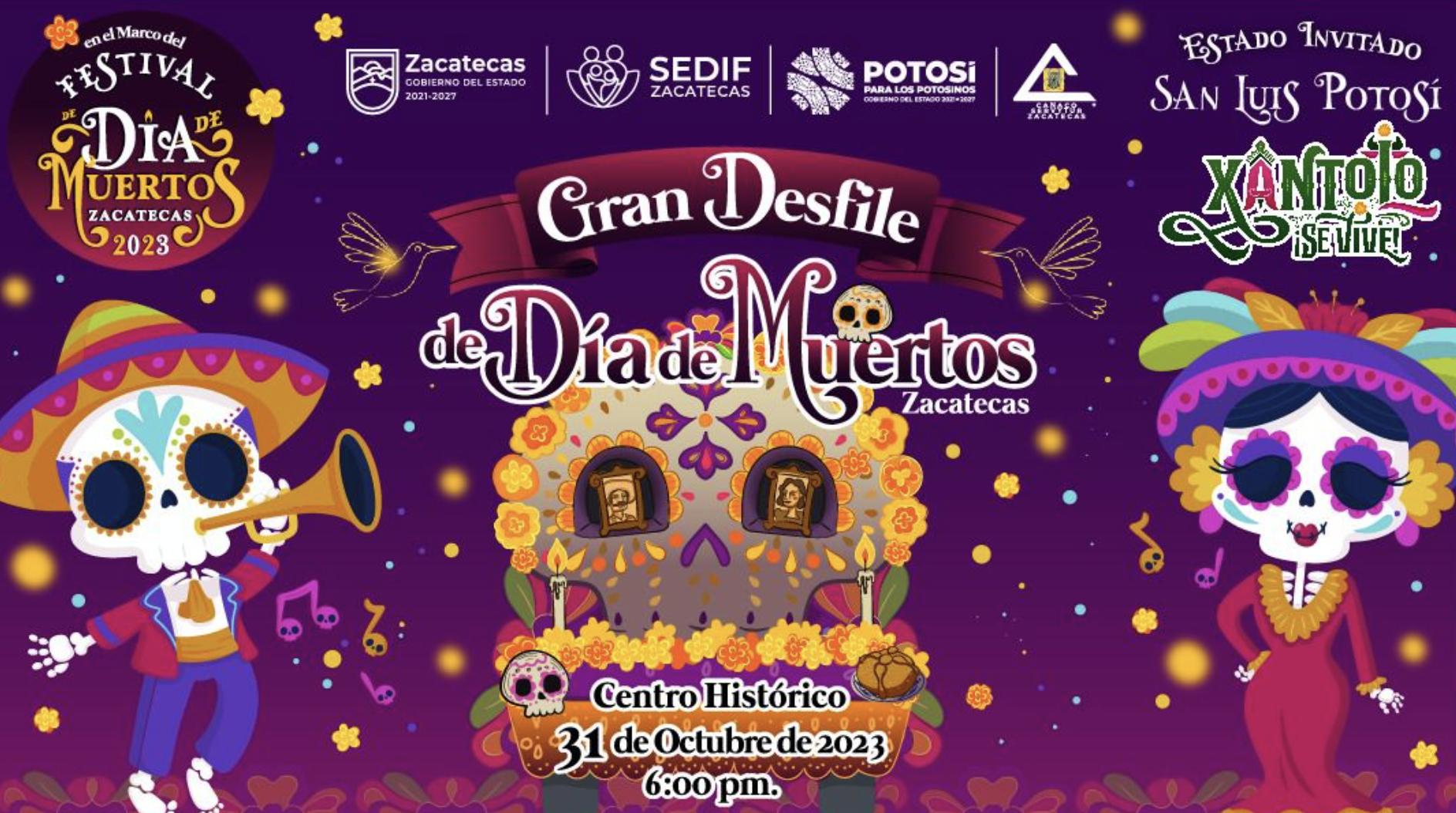 Asimismo, enteró que en este despliegue estarán involucrados representantes de la Cámara Nacional de Comercio de Zacatecas (CANACOZAC); destacó la participación de más de 50 personas que rendirán homenaje a la celebración de “Xantolo”, una variante del día de muertos propia de la región de La Huasteca, que representará al estado invitado, San Luis Potosí.