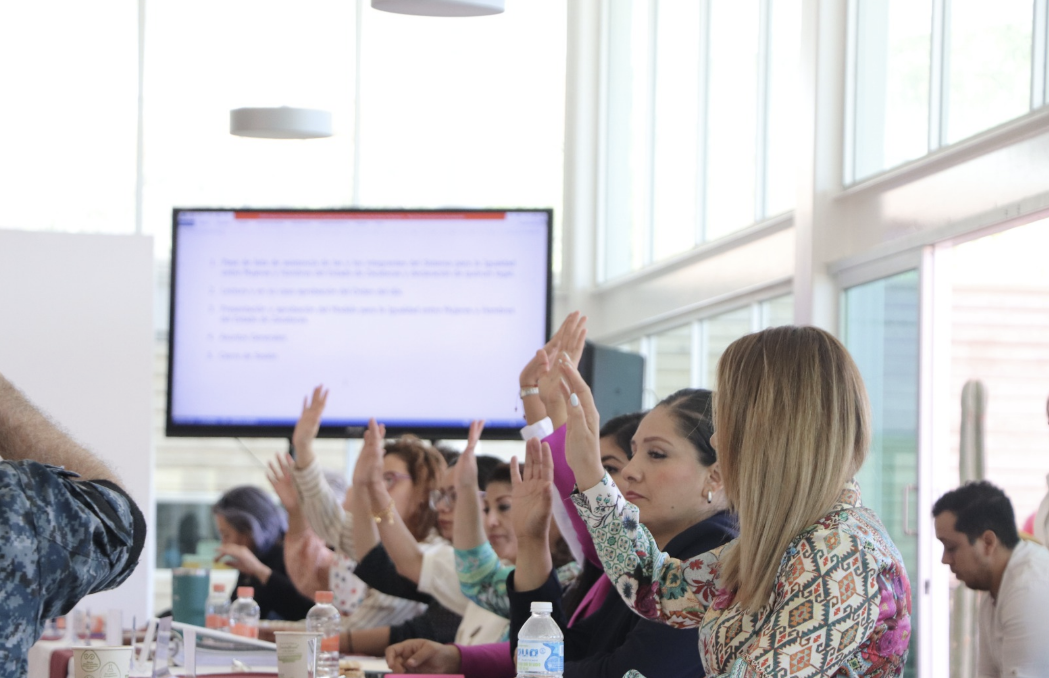 En la sesión participaron la Secretaria del Agua y Medio Ambiente, Susana Rodríguez Márquez; los secretarios de Seguridad Pública y de Desarrollo Urbano Vivienda y Ordenamiento Territorial, Arturo Medina Mayoral y José Luis de la Peña, así como la Coordinadora Estatal de Planeación, Ruth Angélica Contreras Rodríguez; la Diputada Imelda Mauricio Esparza y Míriam García, directora del Instituto para la Inclusión y Atención de Personas con Discapacidad.