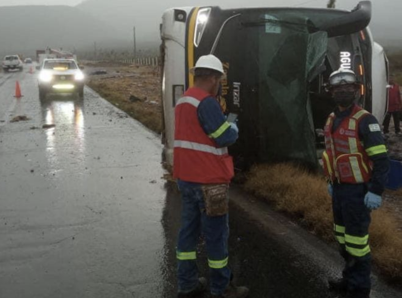 Concepción del Oro, Zac., 3 de julio de 2023.- Por indicaciones del Gobernador David Monreal Ávila, personal de la Red de Emergencias Médicas de Zacatecas (Remeza), perteneciente a la Secretaría de Salud (SSZ), brindó de inmediato servicios de urgencia a los viajeros que sufrieron un accidente de tipo volcadura en el kilómetro 264, de la carretera federal 54 Saltillo-Zacatecas, quienes eran pasajeros de un autobús perteneciente a la línea Zavala Tours, proveniente de la ciudad norteamericana de Houston, Texas, y tenía como destino la capital zacatecana.