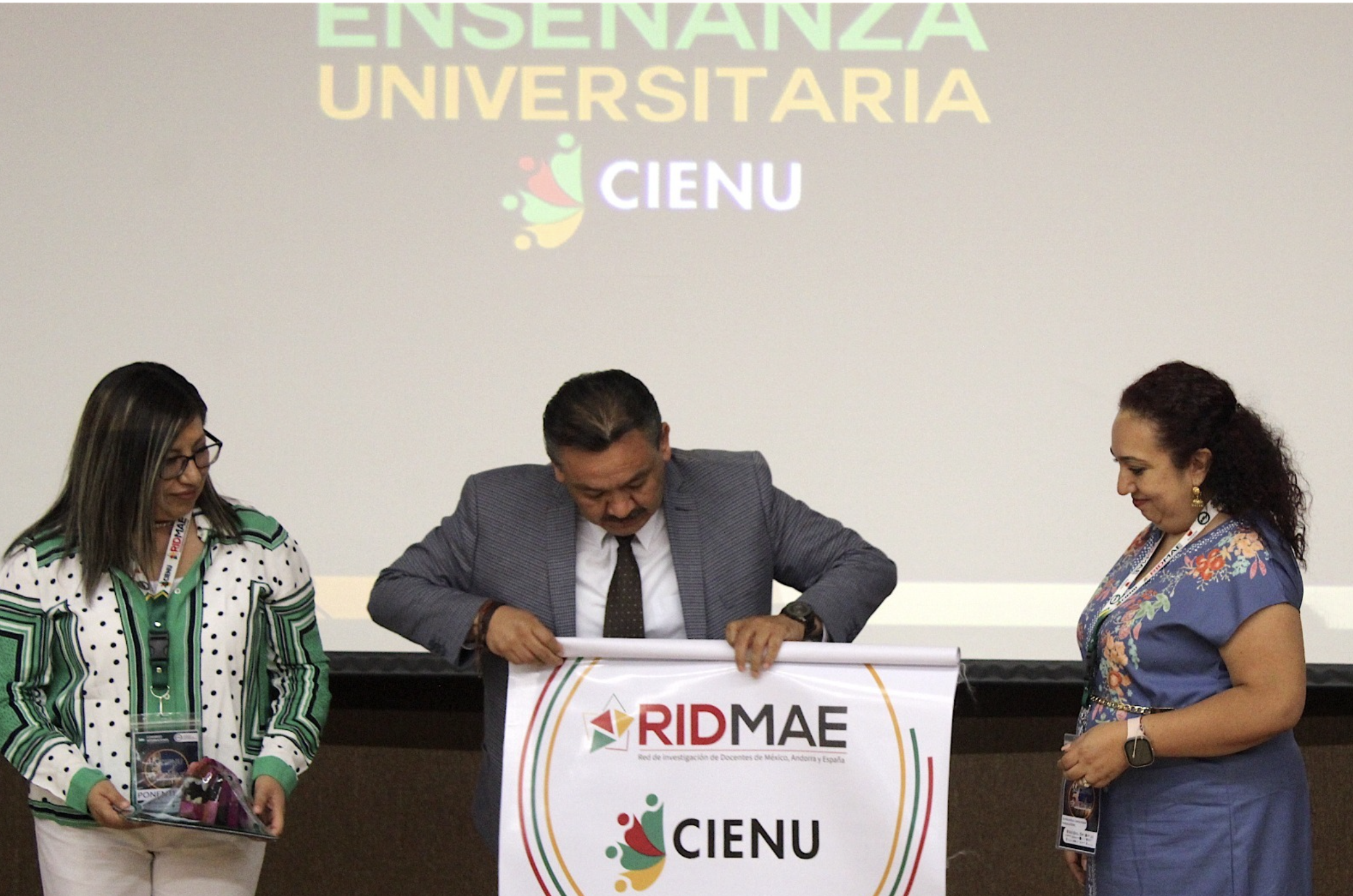 Posteriormente, pasó la estafeta a María del Rocío Carranza Alcantar, presidenta de la Red de Investigación de Docentes de México, Andorra y España (RIDMAE), para la realización del CIENU 2024, en el Centro Universitario de los Altos, en Tepatitlán de Morelos, Jalisco.