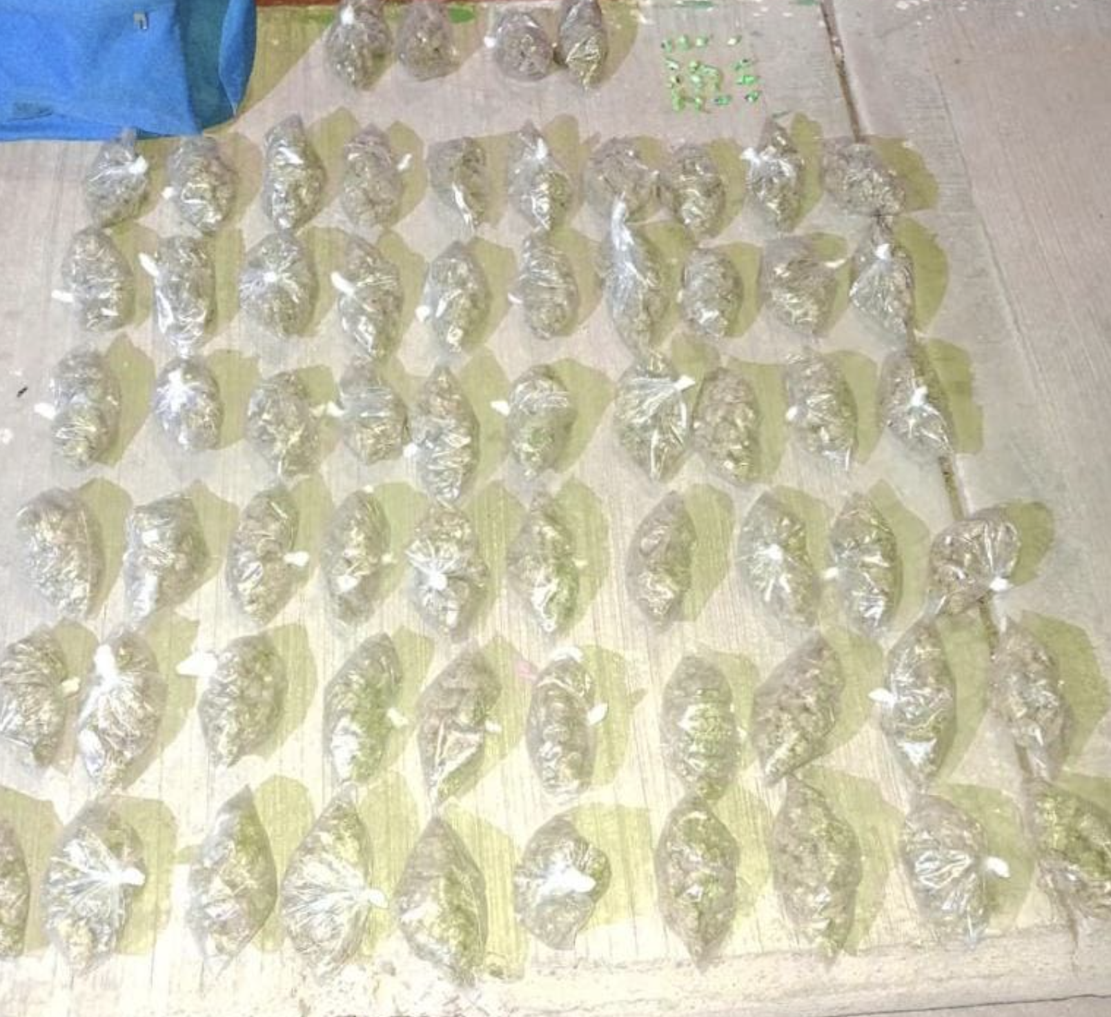 A los ahora indiciados les fueron localizados entre sus pertenencias 32 envoltorios y 25 gramos de una sustancia granulosa con características de la droga conocida como "cristal", 64 bolsas pequeñas que contenían hierba verde y seca, al parecer marihuana, y dos dosis de probable cocaína.