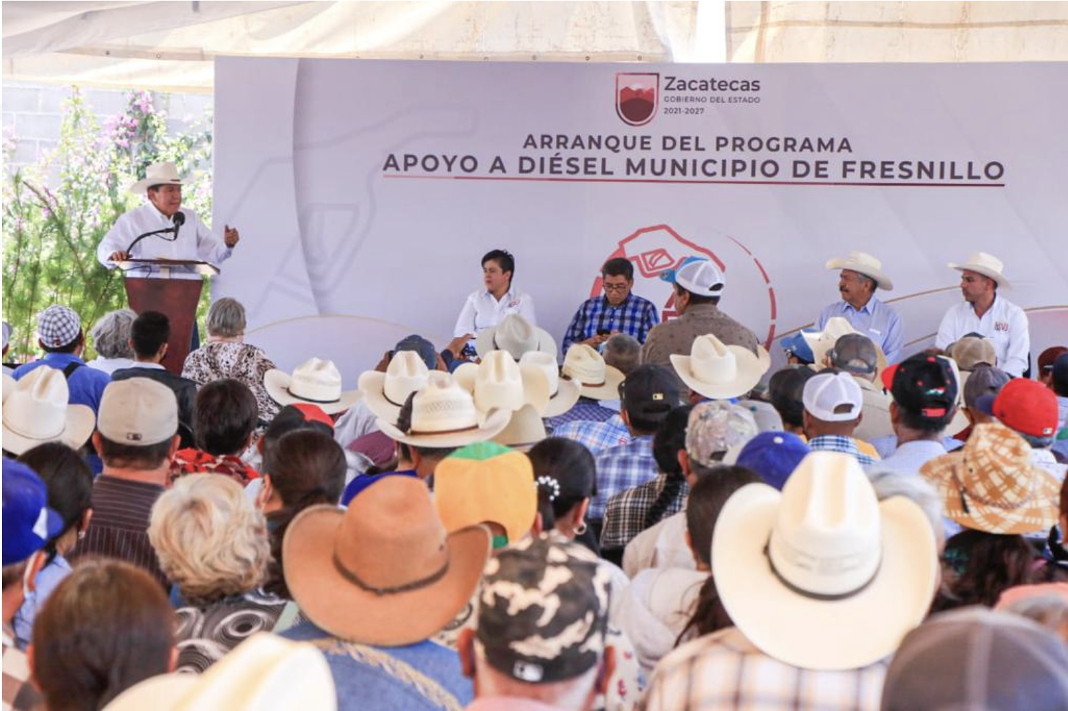 Fresnillo, Zac., 09 de junio de 2022.- Como muestra de su responsabilidad y compromiso con el campo zacatecano, en la segunda zona agrícola más importante de la entidad: la de Fresnillo, el Gobernador David Monreal Ávila anunció un subsidio de seis pesos por litro para el diésel agropecuario, como parte del programa de apoyo que ha implementado para este combustible.