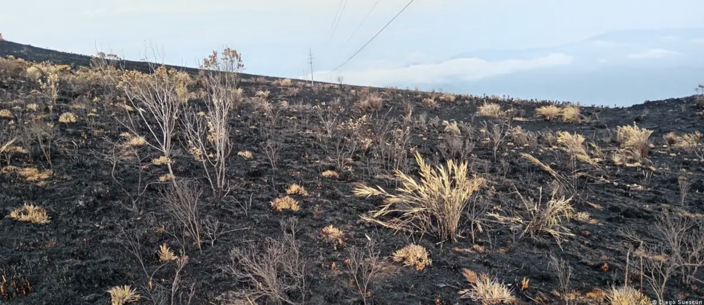 Tallos calcinados de los frailejones aún en pie, en el páramo de Berlín.Imagen: Diego Suescún