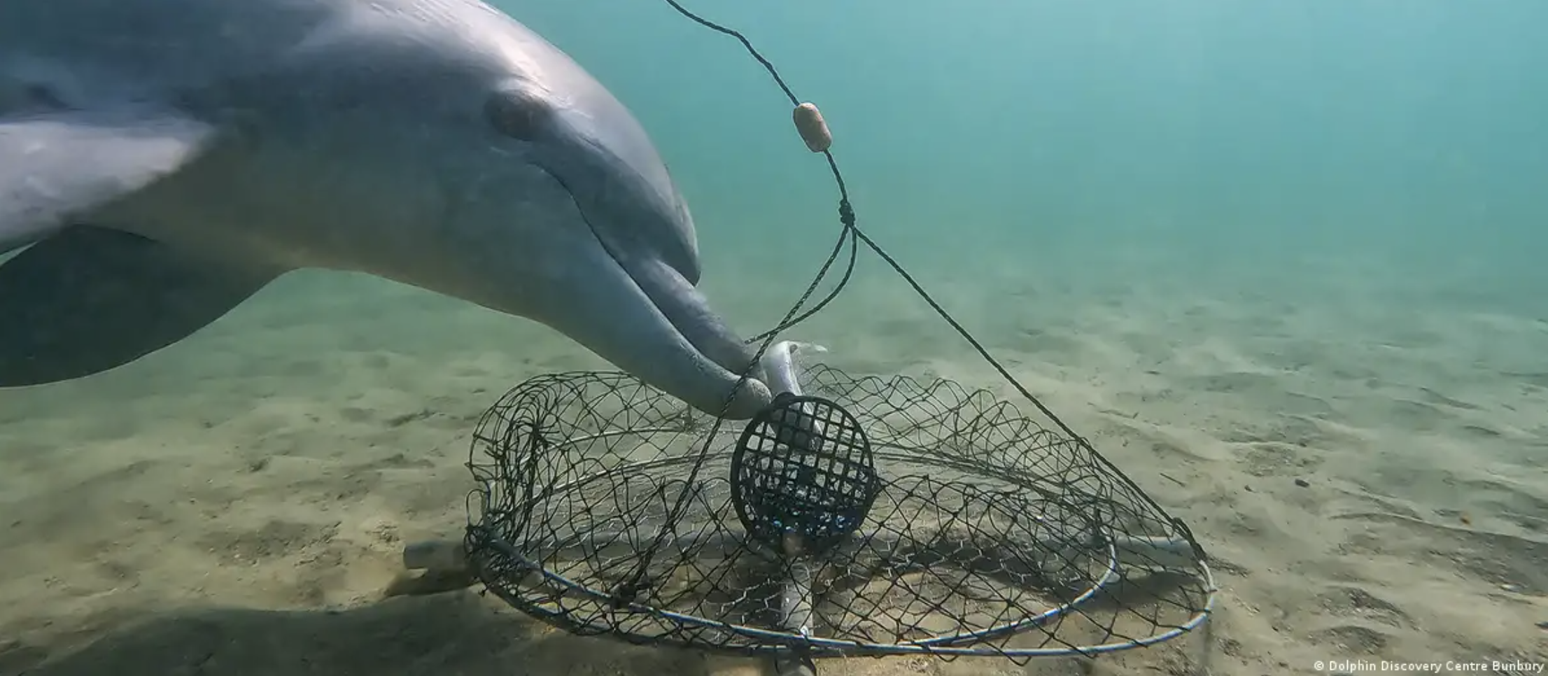 En un intrigante video, se observa a delfines del Indo-Pacífico (Tursiops aduncus) que han aprendido a burlar a los pescadores de cangrejos robándoles el cebo de sus nasas. Lo han aprendido tras décadas de "lucha" por el cebo en la zona de Bunbury, en la bahía de Koombana, un área del océano Índico situada en el extremo suroccidental de Australia, a unos 160 kilómetros al sur de Perth.