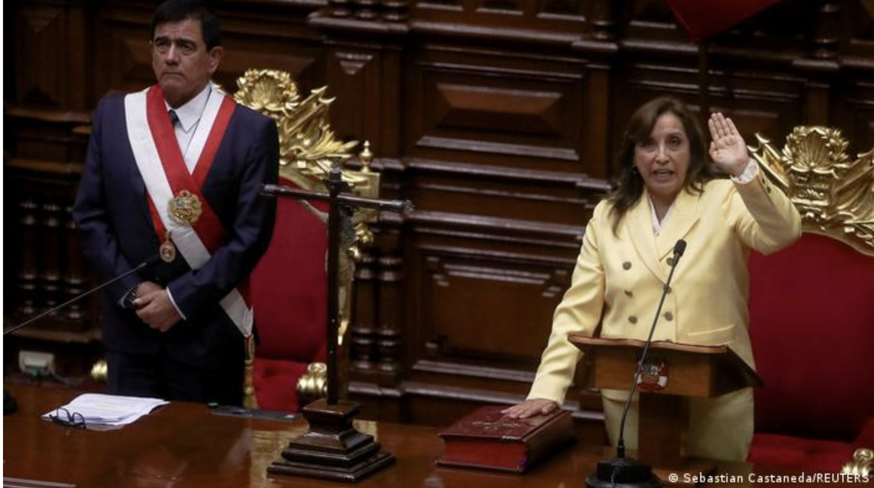La abogada izquierdista Dina Boluarte juró este miércoles (07.12.2022) ante el pleno del Congreso como la primera presidenta de la historia de Perú, tras la destitución de Pedro Castillo, acusado de dar un "golpe de Estado".