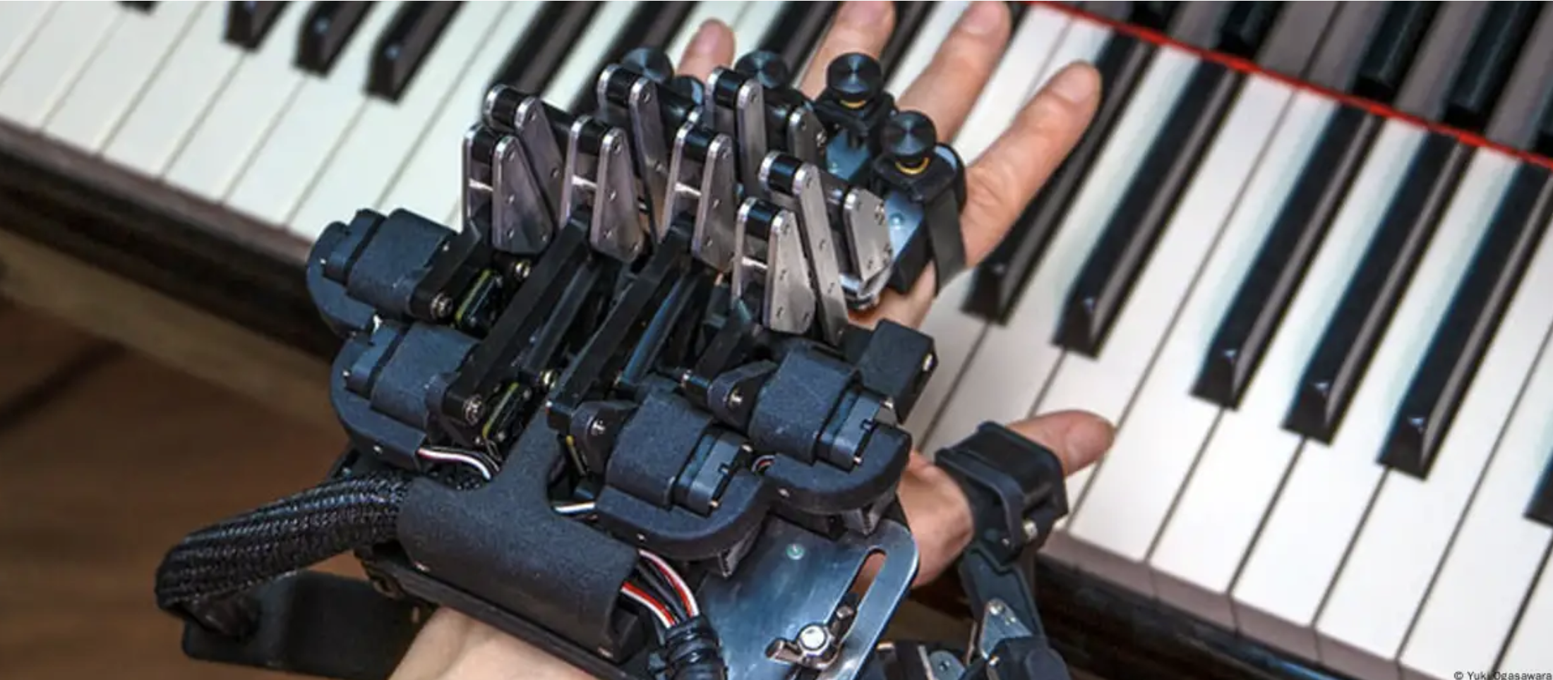 Recordando cómo sus maestros solían guiar sus manos para enseñarle pasajes complejos, concibió la idea de replicar esta experiencia mediante el exoesqueleto robótico capaz de mover cada dedo de forma independiente y más rápida de lo que los músicos podrían lograr por sí mismos.